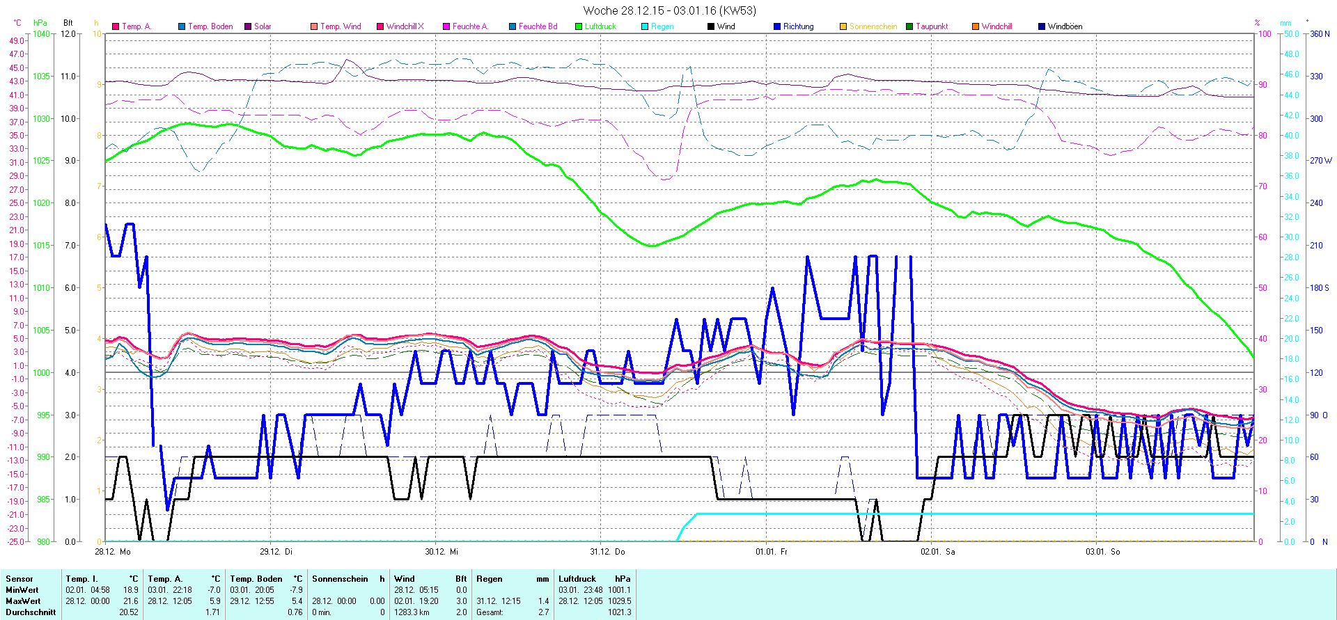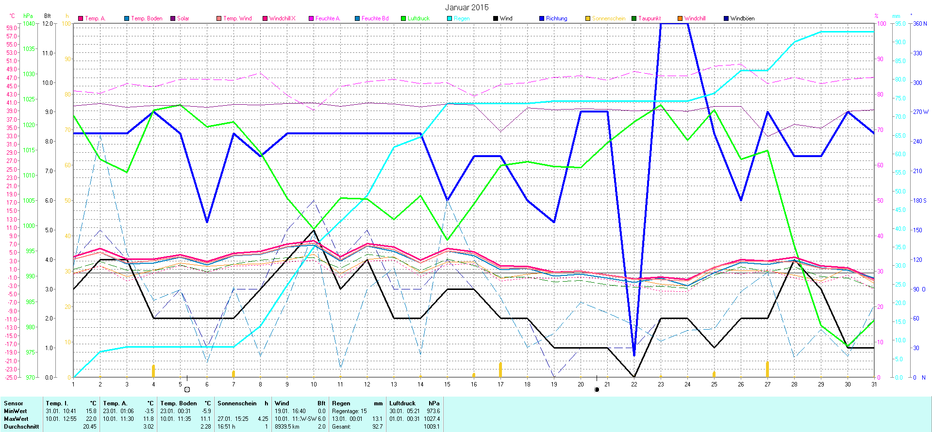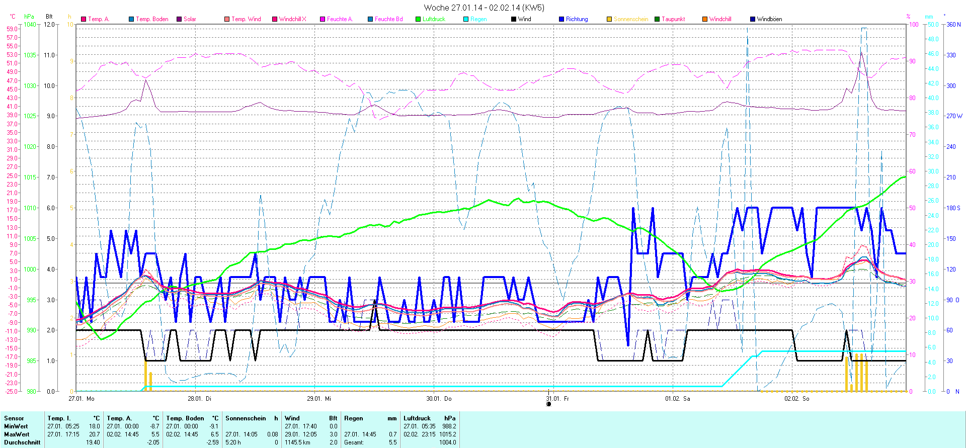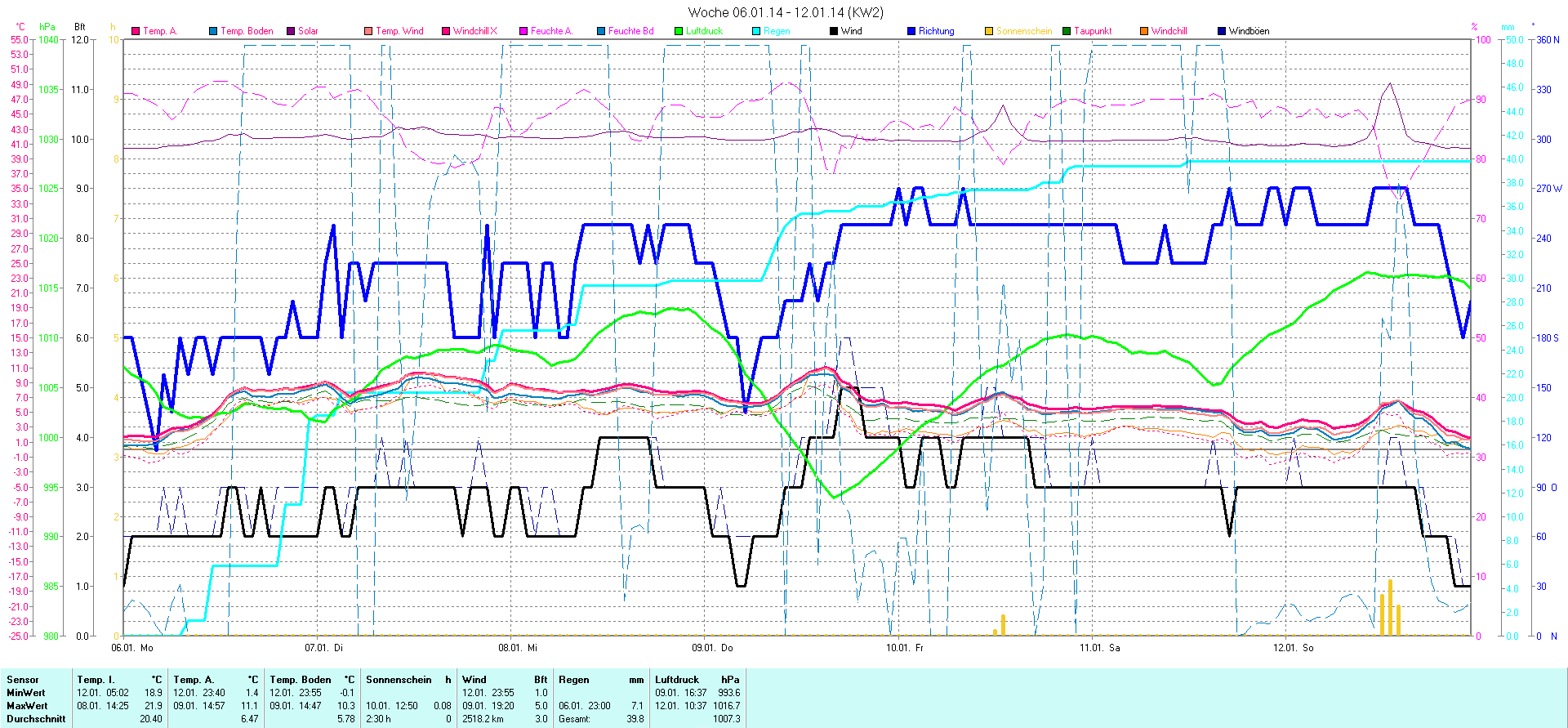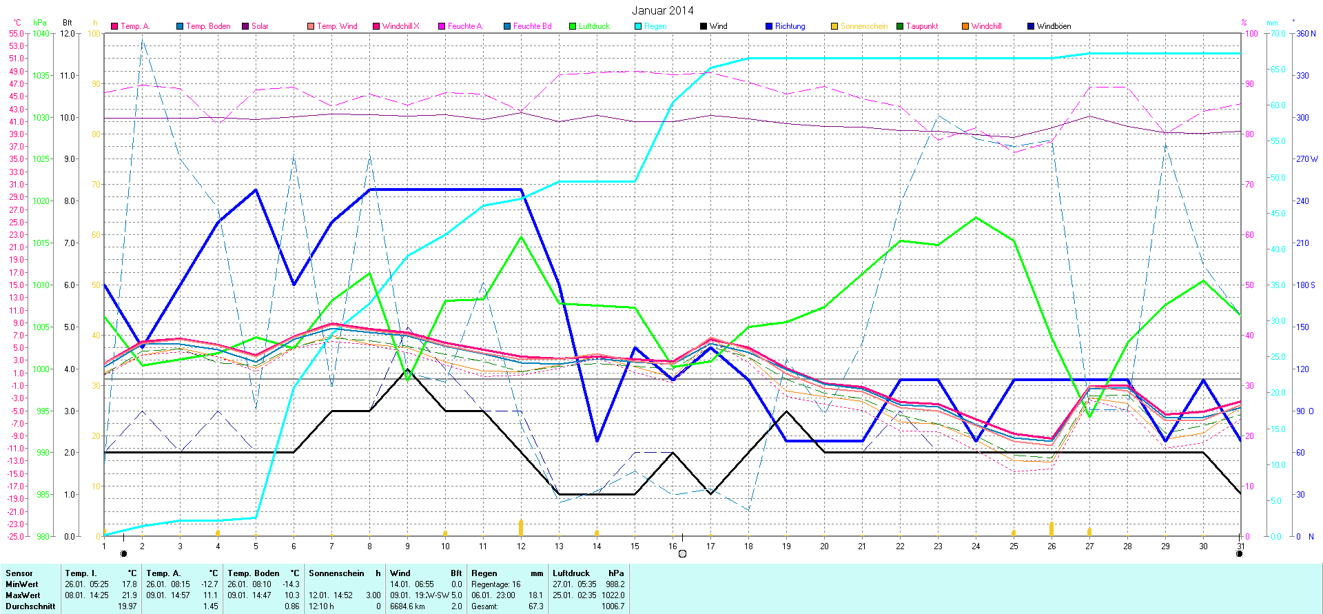 | Wetterstation - Gnissau  39 m über NN - Nördliche Breite: 54 00 00 Östliche Länge: 10 29 00 - Start Montag den 9.1.2012 | |