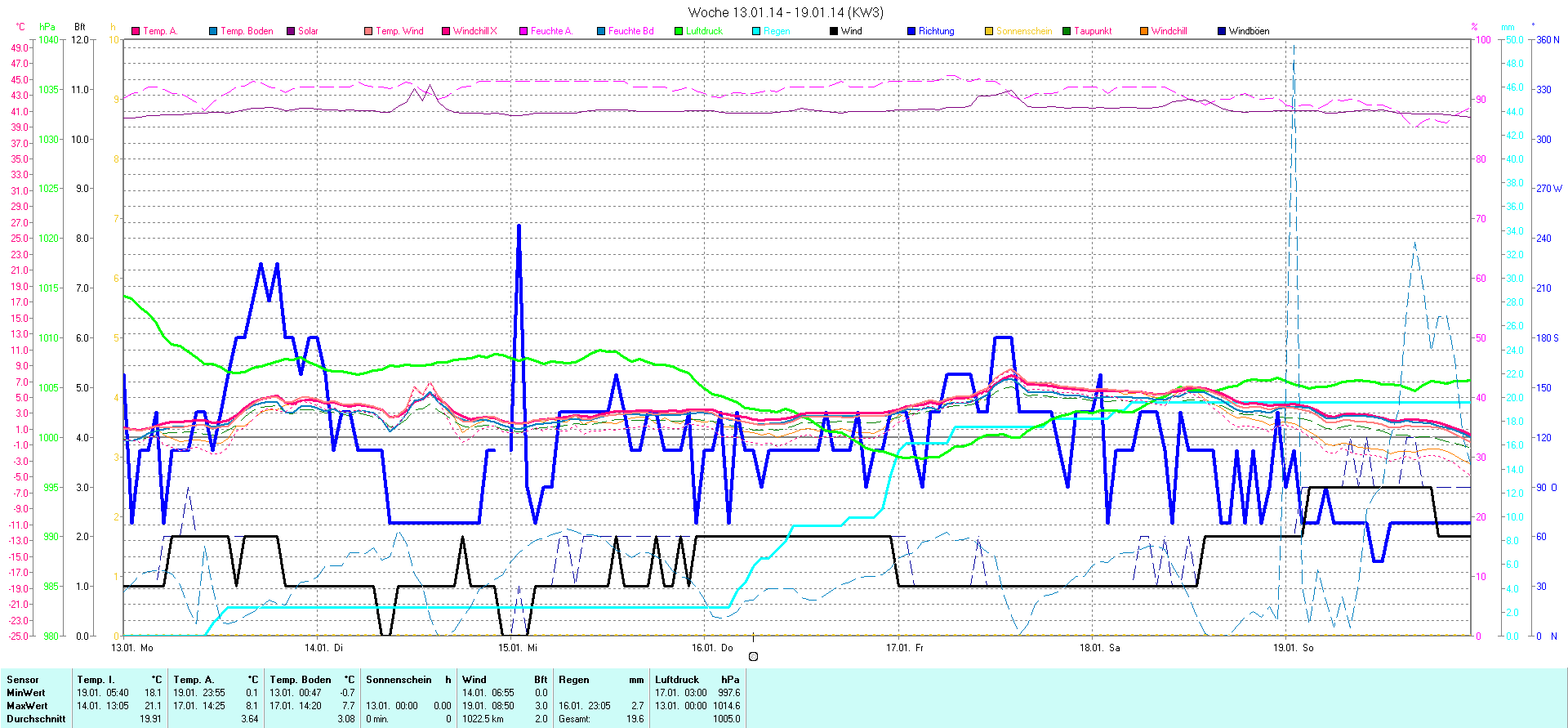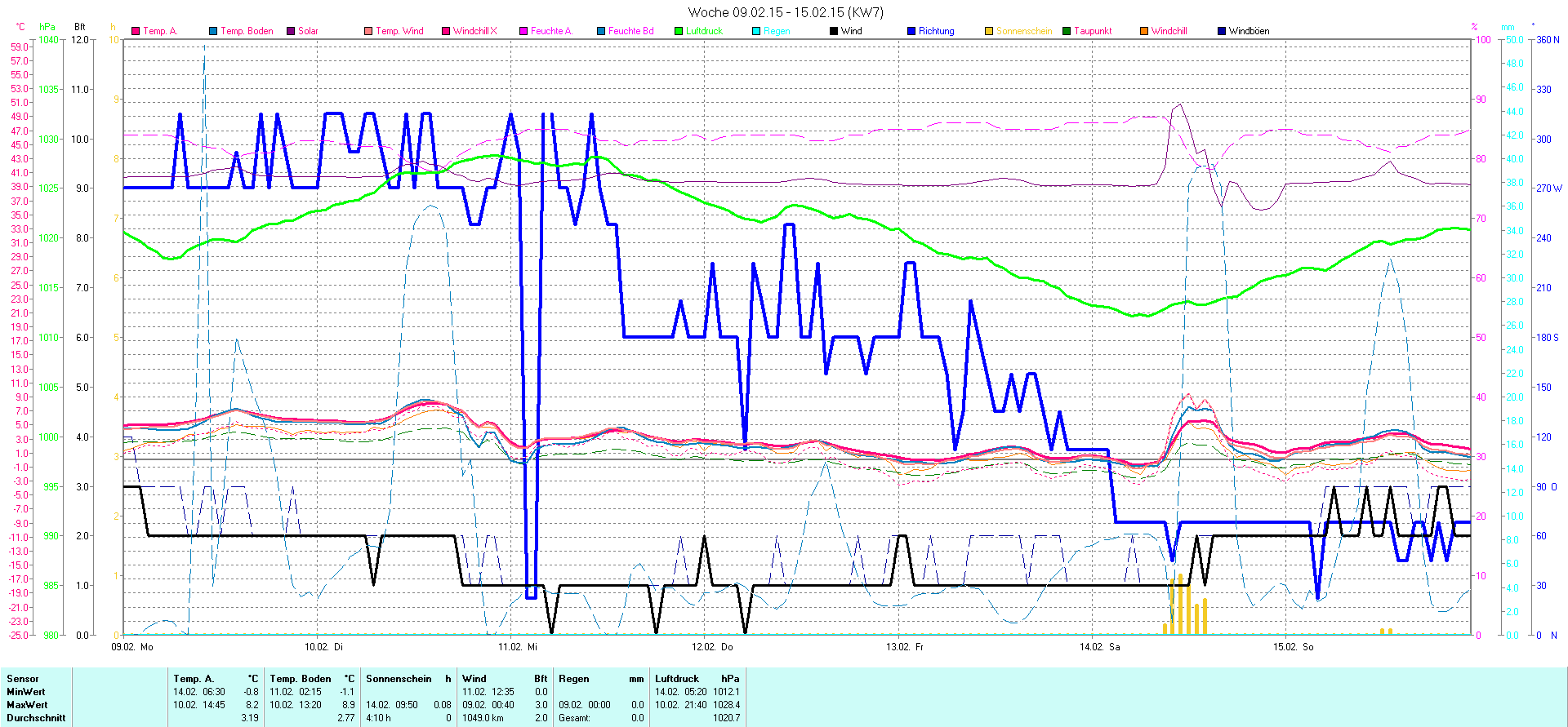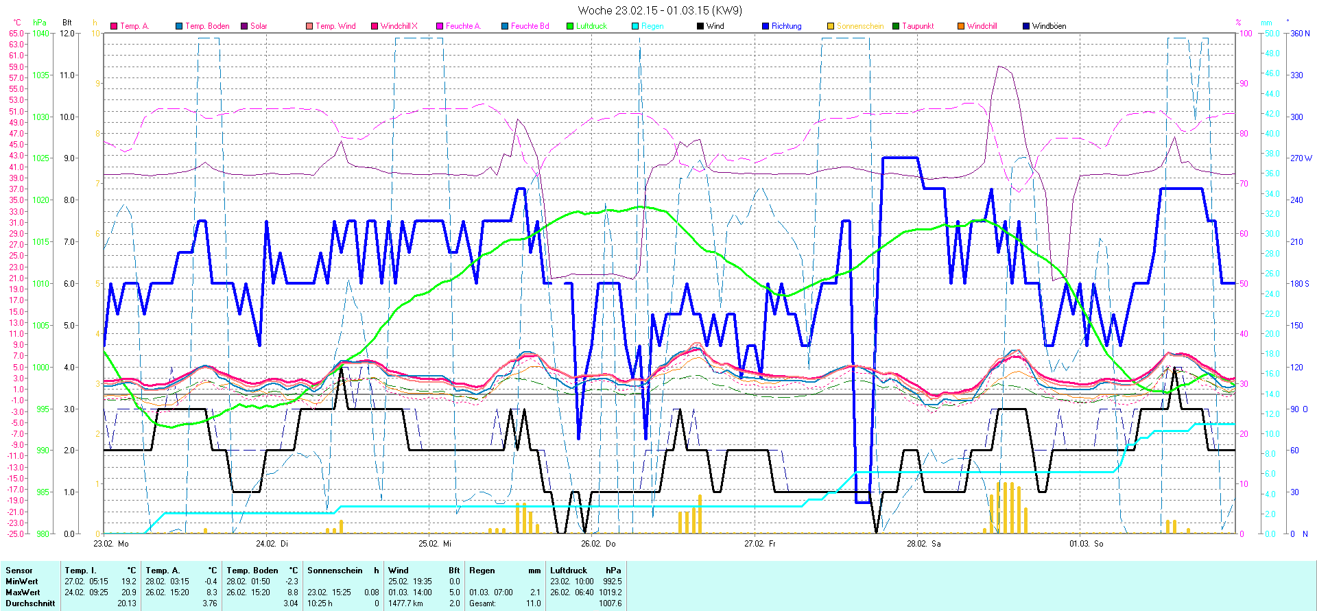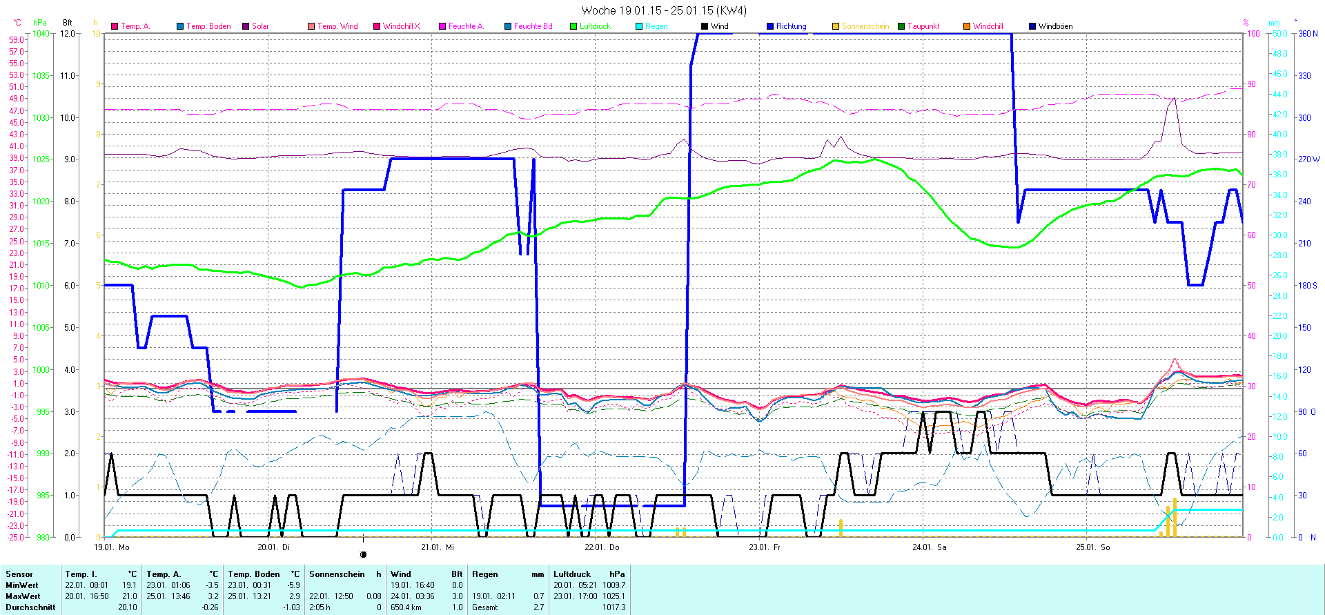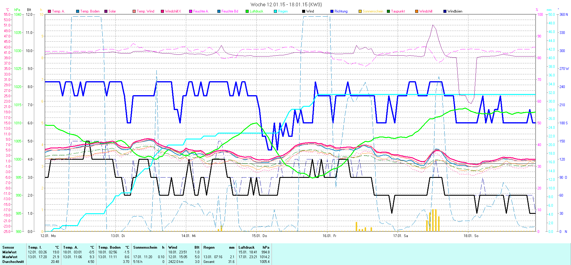 | Wetterstation - Gnissau  39 m über NN - Nördliche Breite: 54 00 00 Östliche Länge: 10 29 00 - Start Montag den 9.1.2012 | |