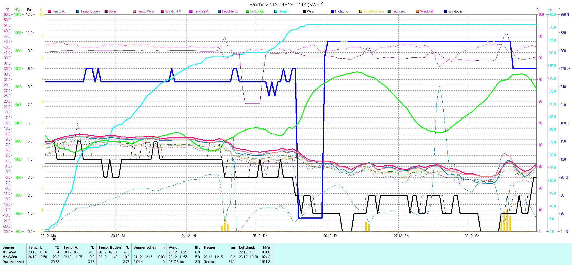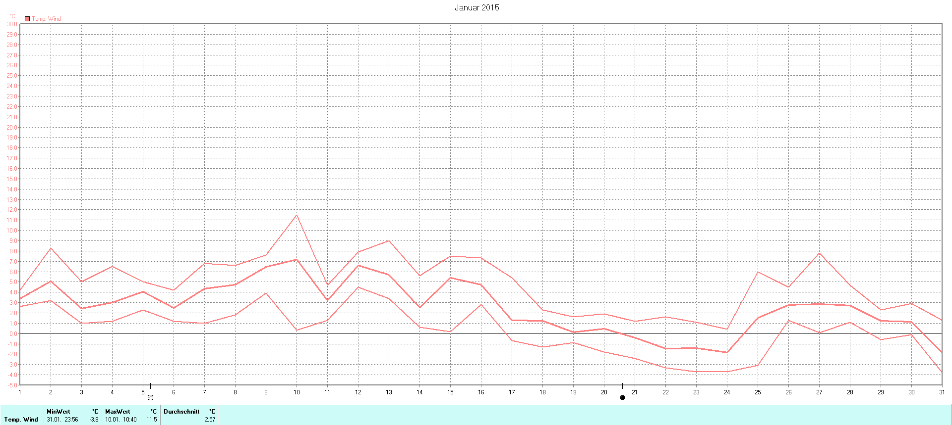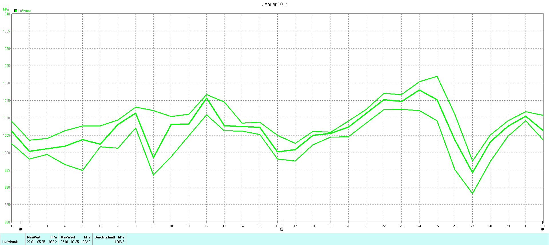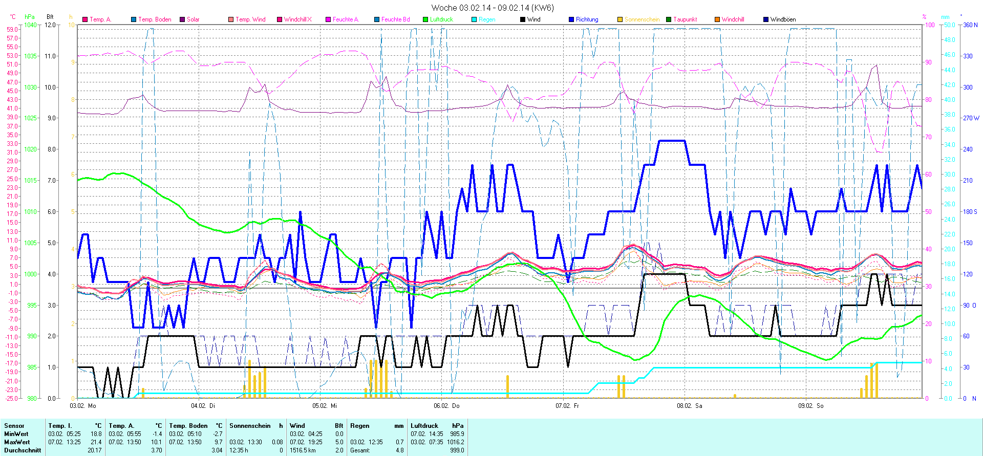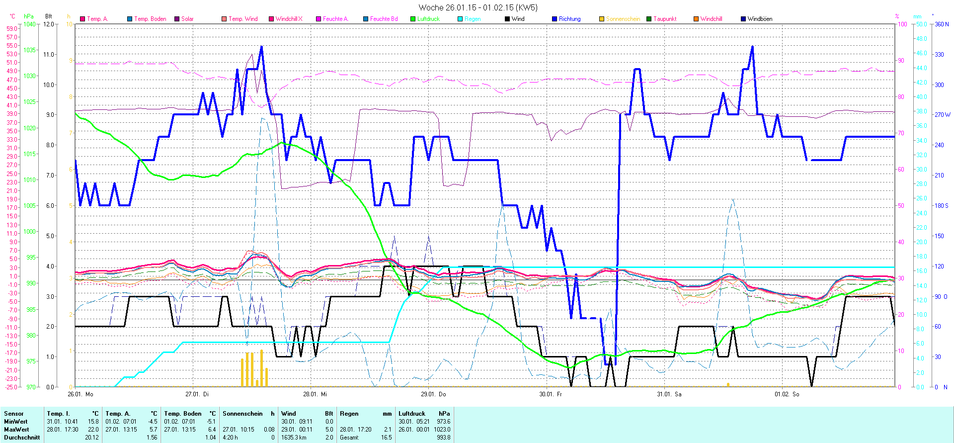 | Wetterstation - Gnissau  39 m über NN - Nördliche Breite: 54 00 00 Östliche Länge: 10 29 00 - Start Montag den 9.1.2012 | |