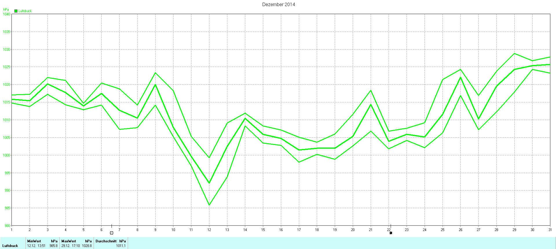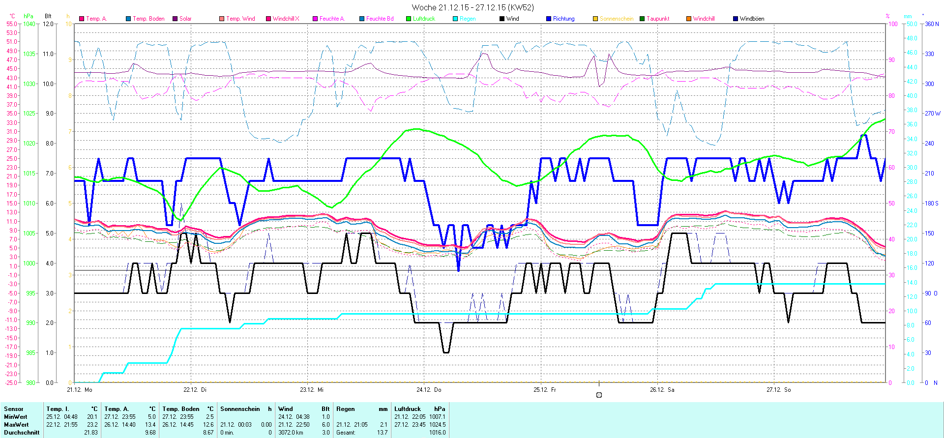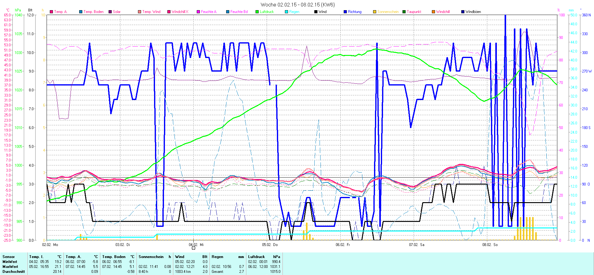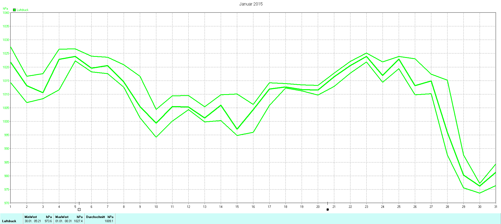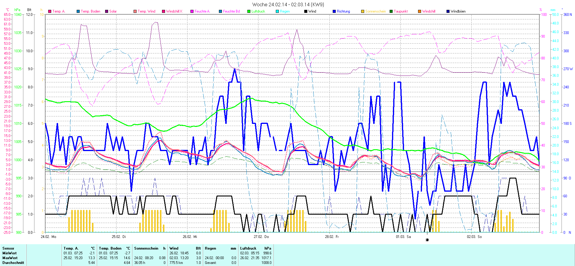 | Wetterstation - Gnissau  39 m über NN - Nördliche Breite: 54 00 00 Östliche Länge: 10 29 00 - Start Montag den 9.1.2012 | |