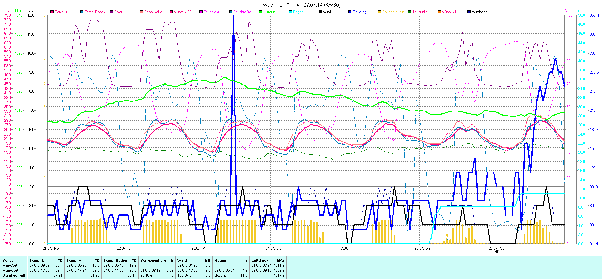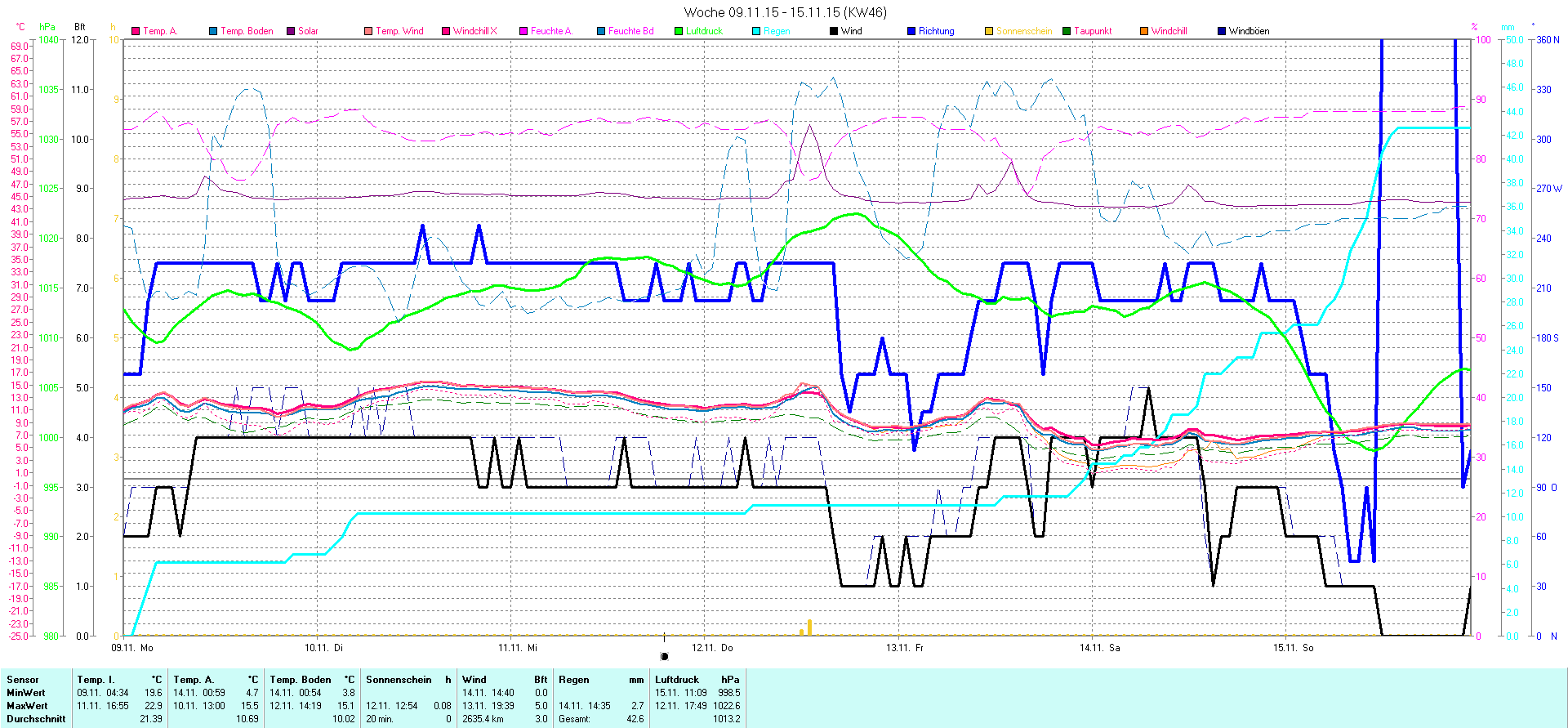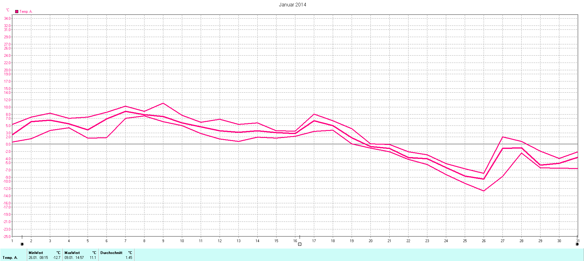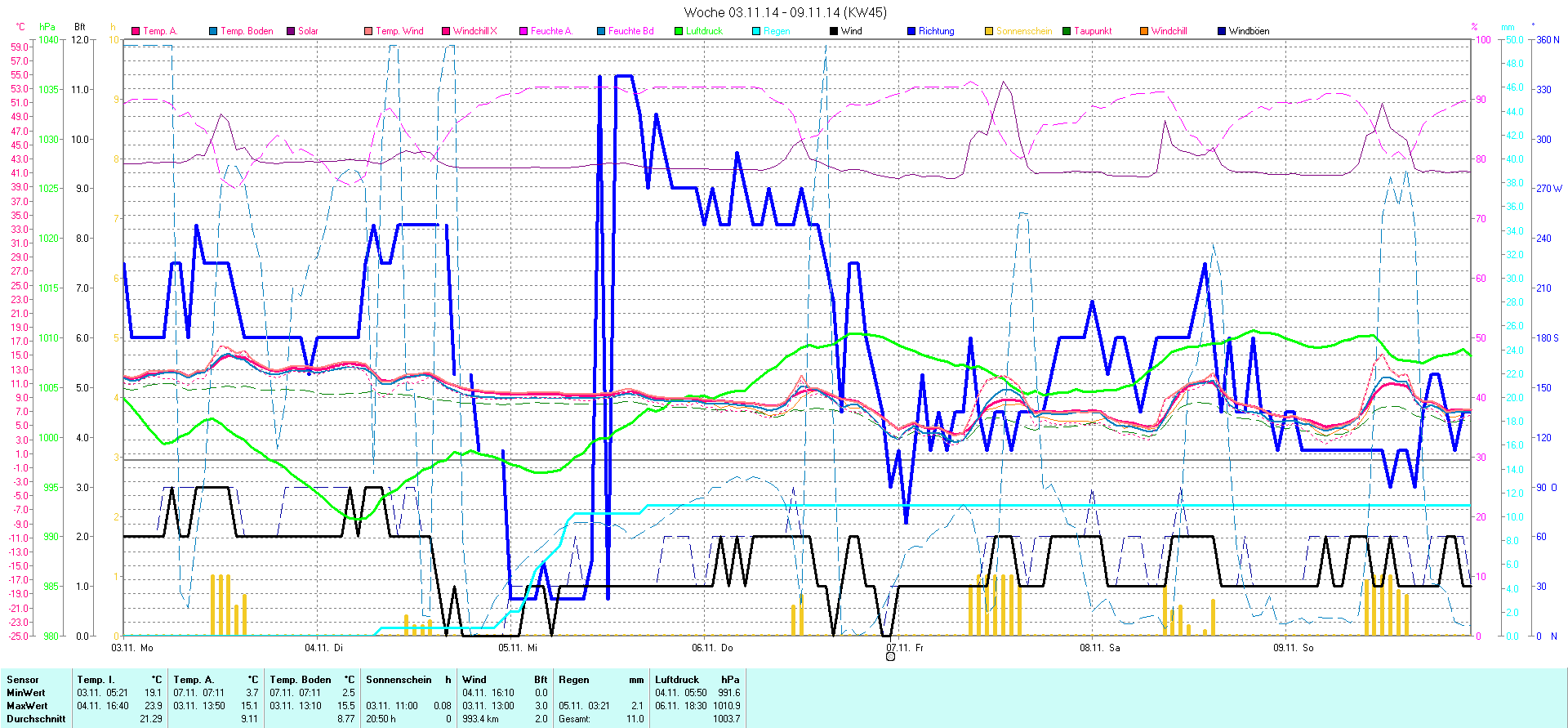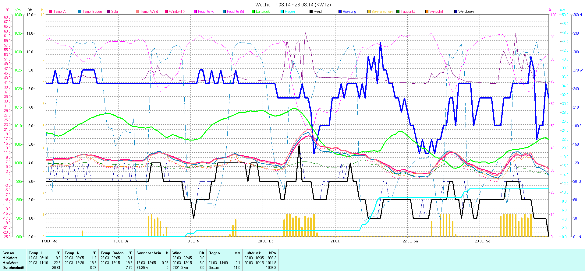 | Wetterstation - Gnissau  39 m über NN - Nördliche Breite: 54 00 00 Östliche Länge: 10 29 00 - Start Montag den 9.1.2012 | |