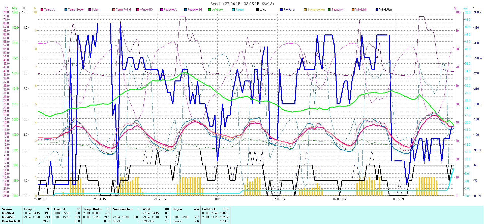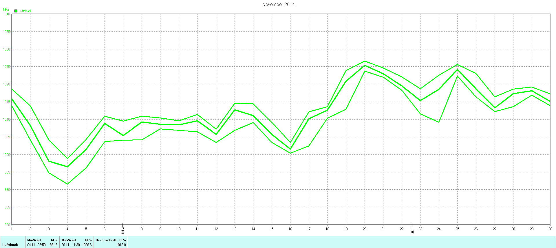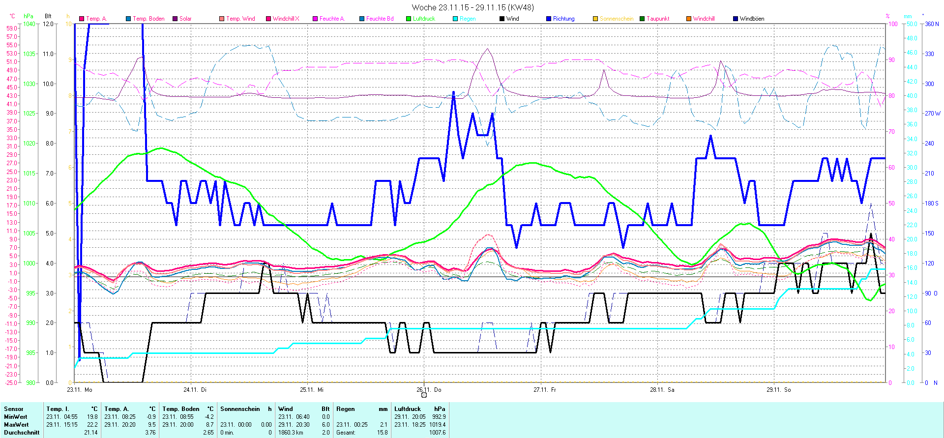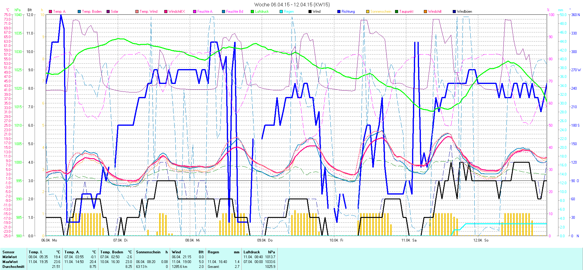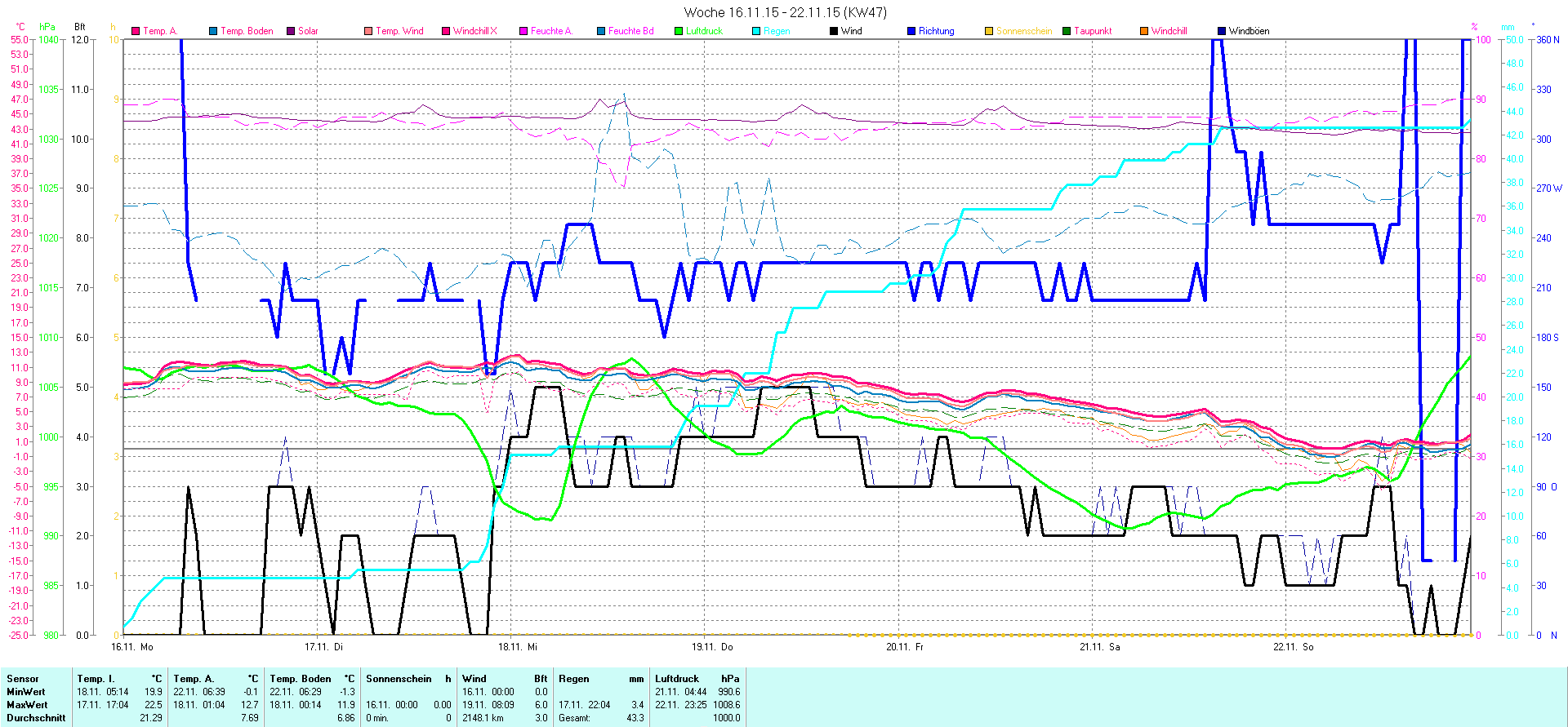 | Wetterstation - Gnissau  39 m über NN - Nördliche Breite: 54 00 00 Östliche Länge: 10 29 00 - Start Montag den 9.1.2012 | |